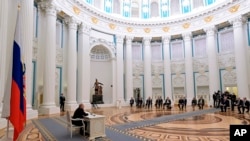 普京星期一從克里姆林宮的一張桌子上對俄羅斯人民發表了近一個小時的電視講話,勾畫了他有關歐洲歷史國界和1990年代蘇聯解體的解讀版本。