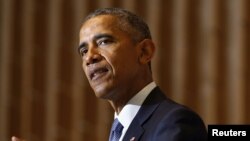 奧巴馬星期三在接受公共電台市場節目採訪時說,“假如我們有亞太地區11個主要經濟體一致同意採納可執行的勞工標準,環境標準,有力地保護知識產權,那麼,中國至少就要考慮這些國際標準。”
