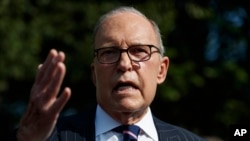 資料照:白宮經濟顧問庫德洛在白宮外對記者談話。(2019年8月6日)