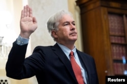 資料照片:被拜登總統提名為中央情報局局長的威廉·伯恩斯在參議院情報委員會的提名確認聽證會上宣誓。(2021年2月24日)
