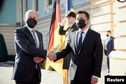 朔爾茨星期日對記者們說,俄羅斯陳兵烏克蘭交界地帶是“非常、非常嚴重的威脅”,而他星期一訪問基輔,星期二在莫斯科停留並會晤普京,是為了找到“一條確保歐洲和平的道路”。