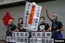 香港民主活動人士梁國雄、曾健成、古思堯等四人前往港府升期儀式現場進行抗議。他們展示“沒有國慶,只有國殤”等標語,要求釋放12名在深圳被拘留的港人。