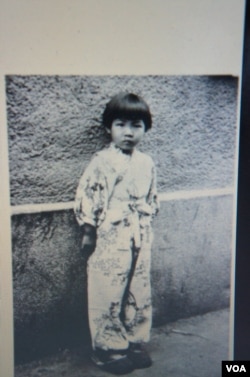 遠藤向記者展示5歲時攝於長春的照片,她說這是在國共內戰時期長春一場巷戰之後拍攝的(美國之音歌籃拍攝)