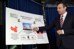 紐約南區聯邦檢察長巴拉拉在記者會上介紹對六名涉及聯合國賄賂案的個人提出的起訴。(2015年10月6日)