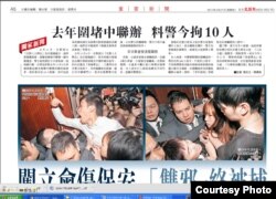 香港警方4月27日展開新一波拘捕行動,將參與去年11月包圍中聯辦抗議人大就議員宣誓釋法的9位社運人士帶往警署落案起訴。此前,親中的文匯報在星期四出版的報紙上獨家預報警方的拘捕,令外界震驚,質疑警方變成政治工具,參與政治檢控。