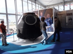 2013年莫斯科航展上展出的俄羅斯聯盟號飛船。神舟飛船被認為在外貌上與聯盟號相似。(美國之音白樺攝)