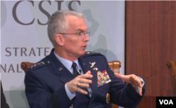美軍參謀長聯席會議副主席塞爾瓦上將2016年10月28日稱美軍優勢得益於民主與開放社會(美國之音黎堡拍攝)