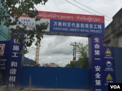 萬象主要街道上的中國工程公司(2016年9月5日,美國之音莉雅拍攝)