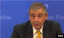 美國國防大學資深研究員普利斯特認為川普會很快認識到美日同盟關係應繼續(美國之音黎堡拍攝)