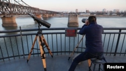 遊客2017年11月19日在中國一側看北韓(路透社)