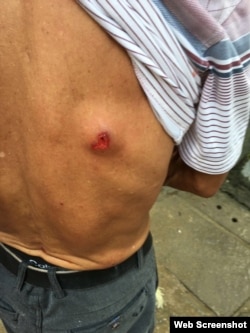 烏坎村民被橡膠子彈擊中受傷(網絡圖片)