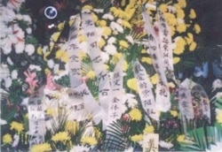 趙紫陽去世後眾人送的花籃花圈,其中習近平的母親齊心送的花圈或花籃上寫著“齊心率子女敬挽”